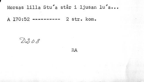 //// Morsas lilla Stu'a står i ljusan lu'a... A 170:52 ------ 2 str. kom. //// RA ////