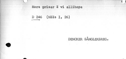 //// i //// Mors grisar ä vi allihopa D 246 (Nääs I, 26) //// DENCKER SÅNGLEKSREG. ////