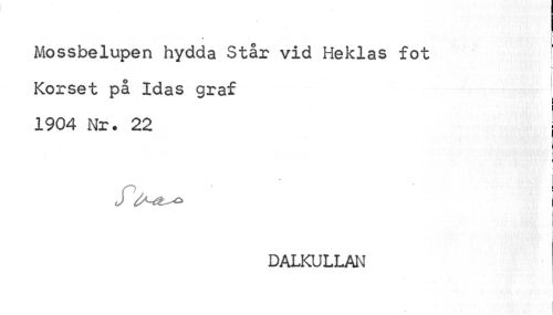 //// Mossbelupen hydda Står vid Heklas fot //// L //// Korset på Idas graf //// 1904 Nr. 22 j //// J i //// DALKULLAN //// v I ////