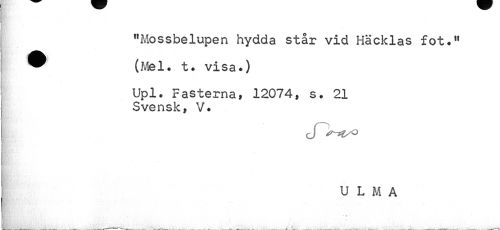 //// "Mossbelupen hydda står vid Häcklas fot*" //// ^ (Mel. t. visa.) //// Upl. Fastorna» 12074, s. 21 Svensk, V. //// J S^O //// ¦Kjlv.' //// ¦ //// ULMA //// »Ur1 , , -••*•••.. , » , . s . SV i .¦/¦., ,, t //// '(>'' ¦ i //// . ^-"»""'V-n. - . , ___ •_____ x_,__ _ . •__..... ___>¦—r_ . ^ . —— —r^/i"1 ////