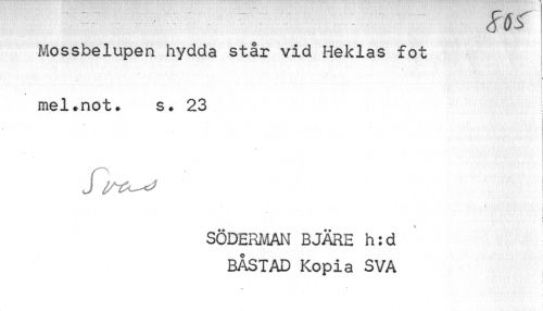 //// <m //// Mossbelupen hydda står vid Heklas fot mel*not. s. 23 //// i r //// f //// ^ //// ; //// SÖDERMAN BJÄRE h:d BÅSTAD Kopia SVA //// • ' ////