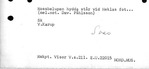 //// Mossbelupen hydda står vid Heklas fot... (mel.not. Dav. Påhlsson) //// V.Karup //// J O^Uo //// HBfi1't' - //// Mskpt. Visor V.S.211. E .U.22015 N0RD-MUS. //// •e //// --—-~-r-^-v--.- — —- ___.____„ ......._ ------V-Wv^t---T----____-------—*¦-----~-------—------ - — - ////