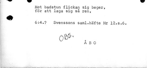 //// Mot badstun flickan sig beger, för att laga sig så ren, //// 6:4.? Svenssons saml*häfte Nr 12.S.6. //// ^ ÅBO //// v //// /