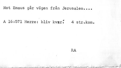 //// Mot Ernaus går vägen från Jerusalem.. ?. //// % //// A 16:571 Herre: bliv kvar' 4 str.kom. //// RA //// % ////