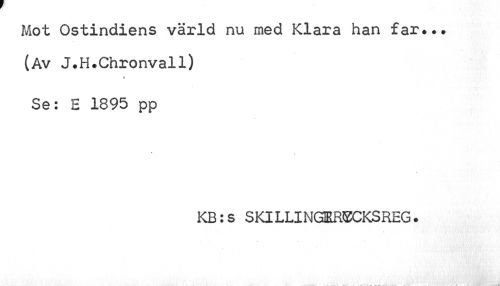 //// Mot Ostindiens värld nu med Klara han far#.# (Av J.H.Chronvall) //// Se: E 1895 pp //// KB:s SKILLINGERSCKSREG. ////