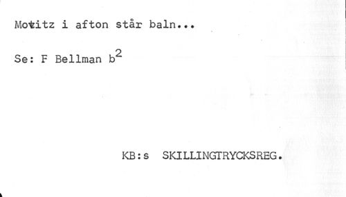 //// c //// Motitz i afton står baln... //// » //// i //// 2 //// Se: F Bellman b //// KB:s SKILLINGTRYCKSREG. ////