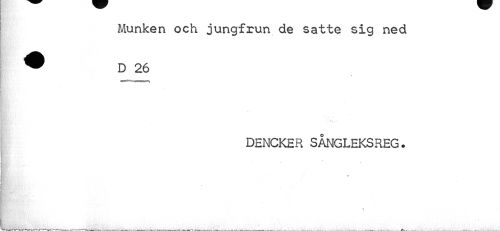 //// Munken och jungfrun de satte sig ned ^ D 26 //// DENCKER SÅNGLEKSREG. //// r ////