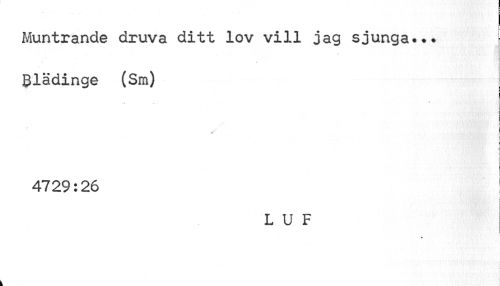 //// - - //// Muntrande druva ditt lov vill jag sjunga... Blädinge (Sm) //// . • //// i //// ! //// r //// i i //// 4729:26 //// LUF //// i ////