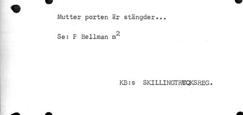 //// Mutter porten är stängder*.. //// 2 //// Se: F Bellman m //// \ //// KB:s SKILLINGTREQKSREG. ////