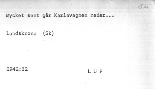 //// ¦ //// Mycket sent går Karlavagnen neder... //// t, //// Landskrona (Sk) //// *** T //// 2942:82 L U F //// » ////