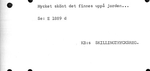 //// ^r Mycket skönt det finnes uppå jorden... //// Se: E 1889 d //// . KB:s SKILLINGTRYCKSREG. //// ¦»i ////
