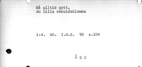 //// Må alltid gott, du lilla oskuldsblomma //// 1:4. HO. I.N.E. 98 s.104 //// ÅBO ////