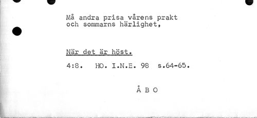 //// Må andra prisa vårens prakt och sommarns härlighet, //// När det är höst* //// 4:8. HO. I.N.E. 98 s*64~65. //// ÅBO ////