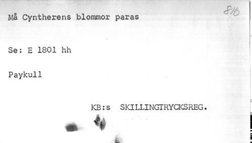 //// Ma Cyntherens blommor paras Se: E 1801 hh //// t : //// Paykull //// KB:s SKILLINGTRYCKSREG. r //// i //// - k, ! ////