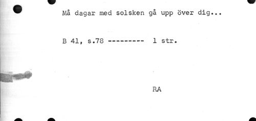 //// ® Må dagar med solsken gå upp över dig.». //// B 41, s.78---- 1 str. //// RA ////