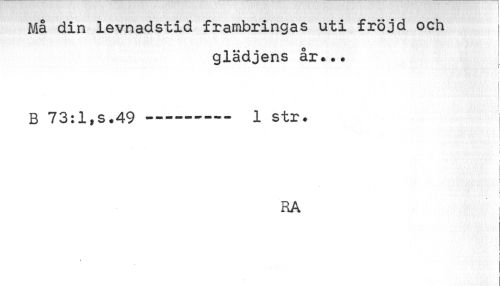 //// Må din levnadstid frambringas uti fröjd och //// glädjens år*.. //// i i //// :• k j //// B 73:1,s.49---- 1 str. //// i //// L //// RA i //// f ////