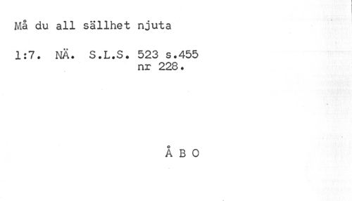 //// Må du all sällhet njuta //// 1:7. NÄ. S.L.S. 523 s.455 //// nr 228. //// % //// ÅBO ////