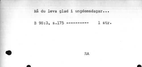//// I ...... - - - - ..... ... //// 0 //// Ma du leva glad i ungdomsdagar.•• //// ..... //// B 98:3, s.175---— 1 str. ////