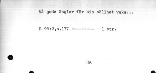 //// Ma goda änglar för sin sällhet vaka.*. B 98:3f s.177----- 1 str. //// ^ RA ////