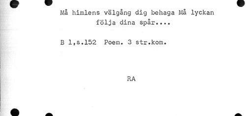 //// Må himlens välgång dig behaga Må lyckan //// följa dina spår.*.* //// B l,s.l52 Poem. 3 str.kom. //// RA ////