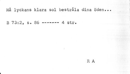 //// Må lyckans klara sol bestråla dina öden*.. //// " r f t >'i < t I //// . . ' ' • l B 73:2, s. 86-------4 str. //// i //// i i //// R A ////