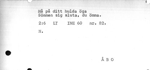 //// Må på ditt hulda öga Sömnen sig sluta» du ömma. //// 2:6 LT INE 60 nr. 82. N. //// % //// ÅBO ////