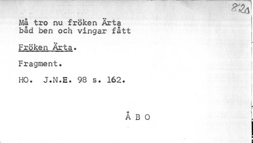 //// Ma tro nu fröken Ärta bad ben och vingar fått //// Fröken Ärta* Fragment. //// i //// HO. J.N.E. 98 s. 162. //// i //// i //// f //// , i //// ÅBO . //// ¦ ////
