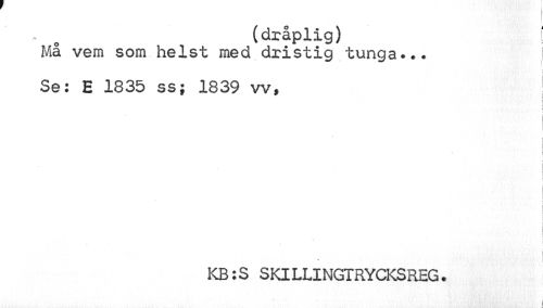 //// - 0 (dråplig) | //// Må vem som helst med dristig tunga... //// Se: H 1835 ss; 1839 w, //// # ' j] '* y ^^ ^ y i //// j //// | //// i //// ] //// i //// «• i //// > i //// j //// KB:S SKILLINGTRYCKSREG. //// I ////