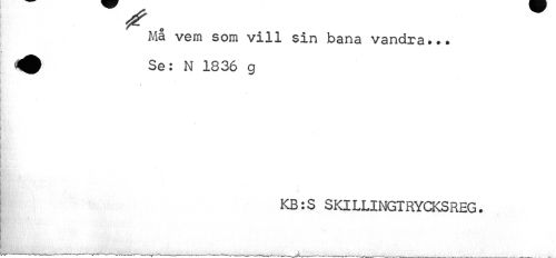 //// Ma vem som vill sin bana vandra... ^ Se: N 1836 g //// r //// KB:S SKILLINGTRYCKSREG. ////