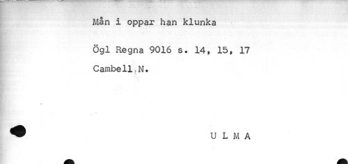 //// Man i oppar han klunka //// Ögl Regna 9016 s. 14, 15, 17 Cambell?N# //// ? //// ^ U L M A ////