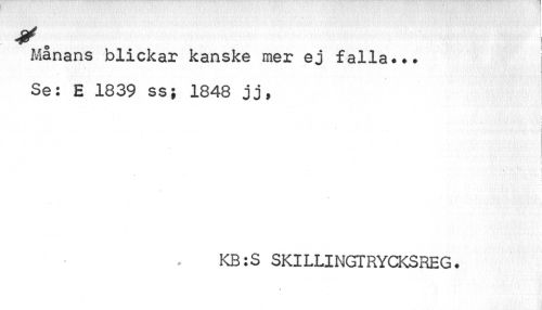 //// i //// Månans blickar kanske mer ej falla... Se: E 1839 ss; 1848 jj, //// KB:S SKILLINGTRYCKSREG. ////