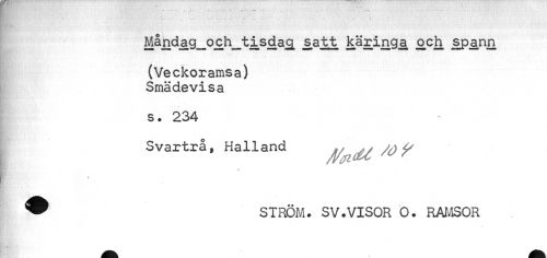 //// Månda>g_o£h_tisda£ satt käringa och spa.nn //// ¦ //// (Veckoramsa) Smädevisa //// s. 234 //// Svartrå» Halland ^ ¥ //// * //// ? STRÖM. SV.VISOR O. RAMSOR //// * ////