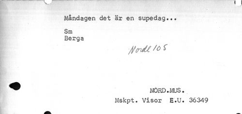 //// Måndagen det är en supedag... Sm //// Berga //// \ NORD.MUS. //// Mskpt. Visor E.U. 36349 ////
