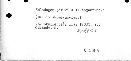 //// "Måndagen gör vi alls ingenting.11 //// ^^ (Mel.t. skomakarvisa.) //// Vb. Skellefteå» lfs. 17003, s.3 Odstedt, H. //// /fwttfoi //// ULMA ////