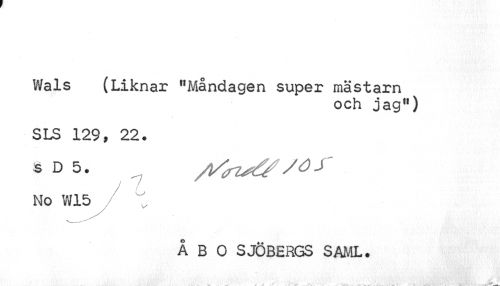 //// Wals (Liknar "Måndagen super mästarn //// och jag") //// SLS 129, 22. //// S D 5. /l/crtså?SÖy //// No W15 / "t //// ÅBO SJÖBERGS SAML. ////
