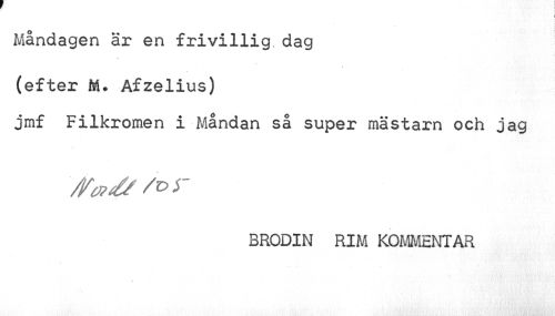 //// i //// Måndagen är en frivillig dag (efter M* Afzelius) //// jmf Filkromen i Måndan så super mästarn och jag //// 'fa/t /*> r //// BRODIN RIM KOMMENTAR ////