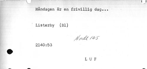 //// -*--- //// Måndagen är en frivillig dag... Listerby (Bl) //// /O //// 2140:53 //// L U F ////
