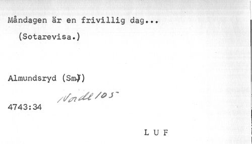 //// Måndagen är en frivillig dag... (Sotarevisa.) //// Almundsryd (Sm^) 4*743 # 34 //// L U F ////