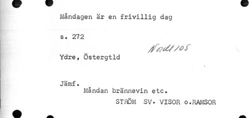 //// Måndagen är en frivillig dag s. 272 //// Ydre, Östergtld //// * //// Jämf • //// Måndan brännevin etc. //// STRÖM SV* VISOR o.RAMSOR ////