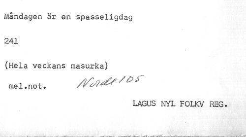 //// Måndagen är en spasseligdag 241 //// (Hela veckans masurka) //// mel.not. /V*^ '* //// LAGUS NYL FOLKV REG. ////