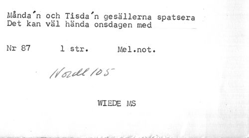 //// Månda'n och Tisda'n gesällerna spatsera Det kan väl hända onsdagen med //// Nr 87 1 str. Mel.not. //// WIEDE MS //// V //// , . , V ^ '» '(> ; //// __ w M ,ril„____i * A —Lué»0\J s \ Jf K. J . : .*> - ' « ' - MÉIBMBWUJÉBH -'-t- ////