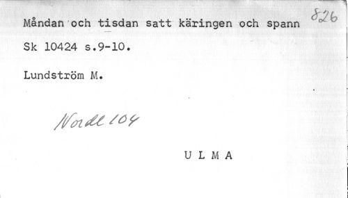 //// Å '} l //// Måndan och tisdan satt käringen och spann Sk 10424 s.9-10. //// Lundström M. //// r //// i //// i //// /fauttso? //// } //// U L M A ////