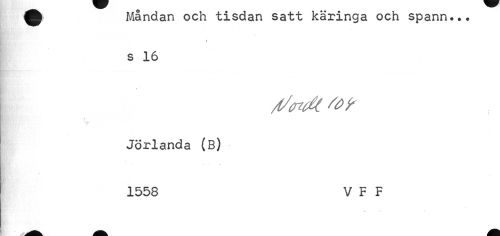 //// ^ Mandan och tisdan satt käringa och spann..• //// * //// t //// s 16 //// K V //// Jörlanda (B) //// s //// 1558 V F F ////