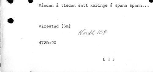 //// Måndan å tisdan satt käringe å spann spann... Virestad (Sm) //// /1/aicM /Of //// 4735:20 //// LUF ////