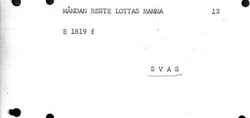 //// MÅNDAN RESTE LOTTAS MAMMA 13 //// » //// E 1819 f //// - //// f //// * ' • • 1 S V A S //// f # ////