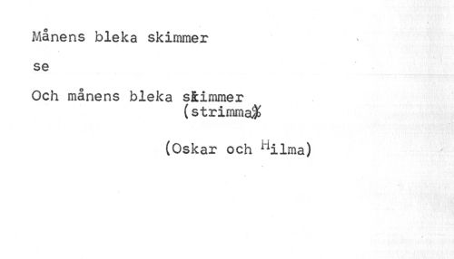 //// Månens bleka skimmer //// % //// se //// Och månens bleka siimmer //// (strimma^ //// (Oskar och Hilma) //// * ////