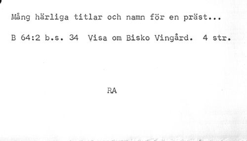 //// Mång härliga titlar och namn för en präst... B 64:2 b.s. 34 Visa om Bisko Vingård. 4 str. //// RA //// . •. fl ^imPMB m • . Jv* .jrf if* fr i ' ' ^ » ' !/ iWt •¦ i »'«•! '<' ////