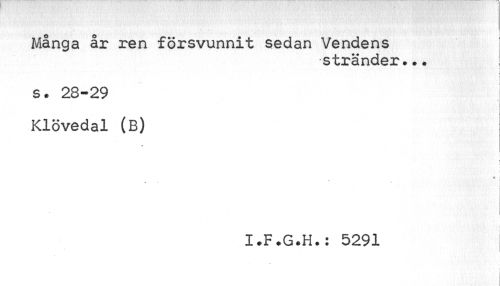 //// Många år ren försvunnit sedan Vendens //// stränder... //// i //// : //// s. 28-29 I //// f //// Klövedal (B) //// >1. -^H^^trSi^&^^iii i //// f //// * \ //// ¦i • //// I.F.G.H.: 5291 ////