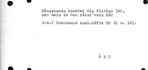 //// Mångahanda konster sig flickan lär, men mera om hon råkar vara kär //// 3:4.? Svenssons saml.häfte Nr 31 s. '141• //// ÅBO ////