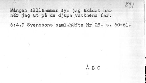 //// O^f //// Mången sällsammer syn jag skådat har när jag ut på de djupa vattnena far. //// 6:4.? Svenssons saml.häfte Nr 28. s. 60-61. //// - //// \ f'' • I //// ÅBO j //// ¦ //// m //// i ¦ ////